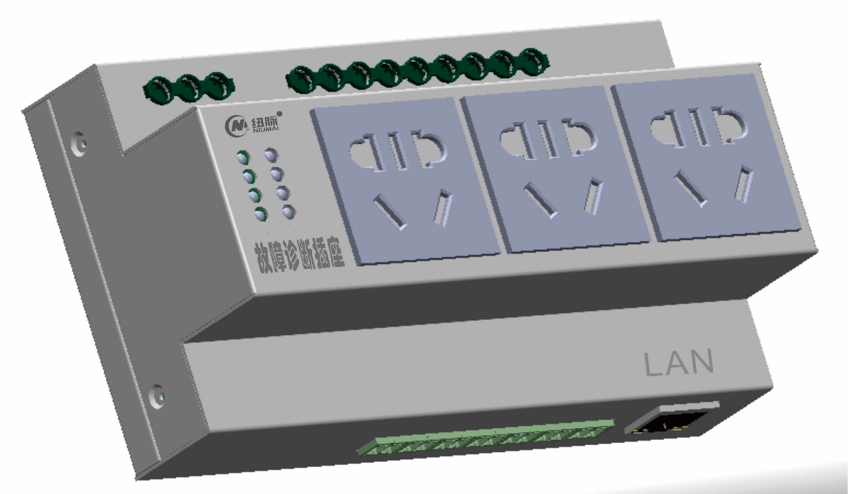 导轨式户外监控箱专用模块,集成3路AC220v插座+2路AC220V端子+3路DC12V 8路控制+自愈功能。支持市电/网络/设备异常检测,自动重启光猫/摄像机,RS485+DC12V扩展接口及8路状态指示灯。