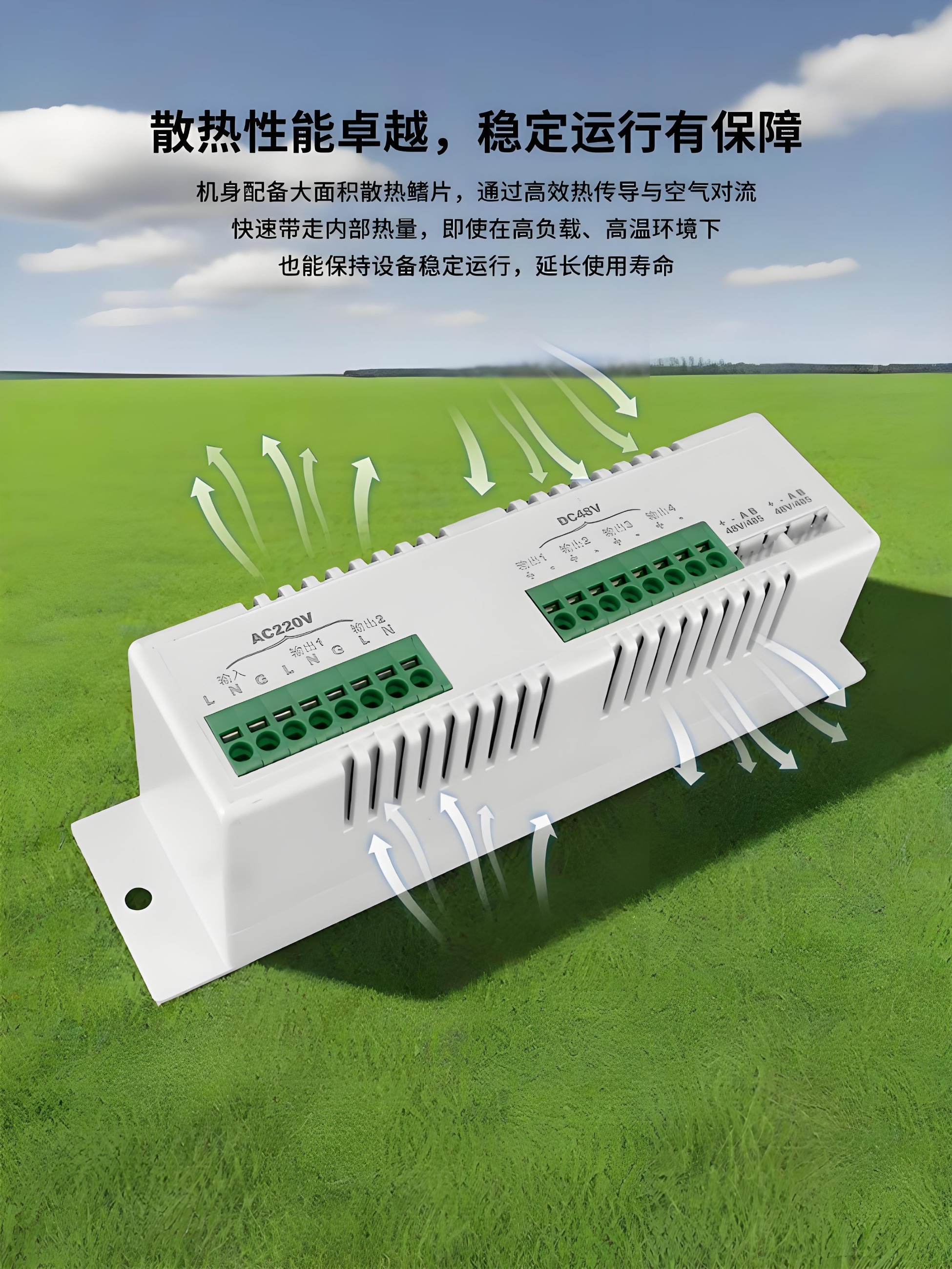 高度集成:单模块集成POE供电(网线供电)和AC交流输出,简化箱内布局。