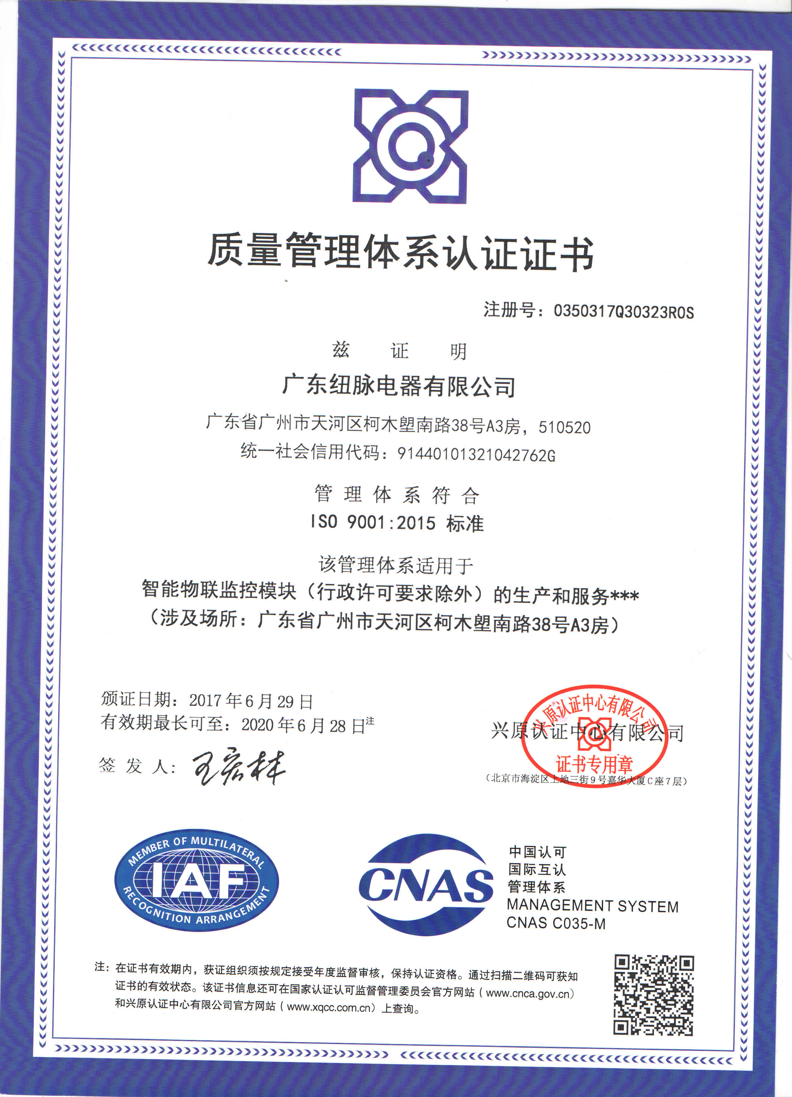 ISO 9001:2005 质量管理体系认证书