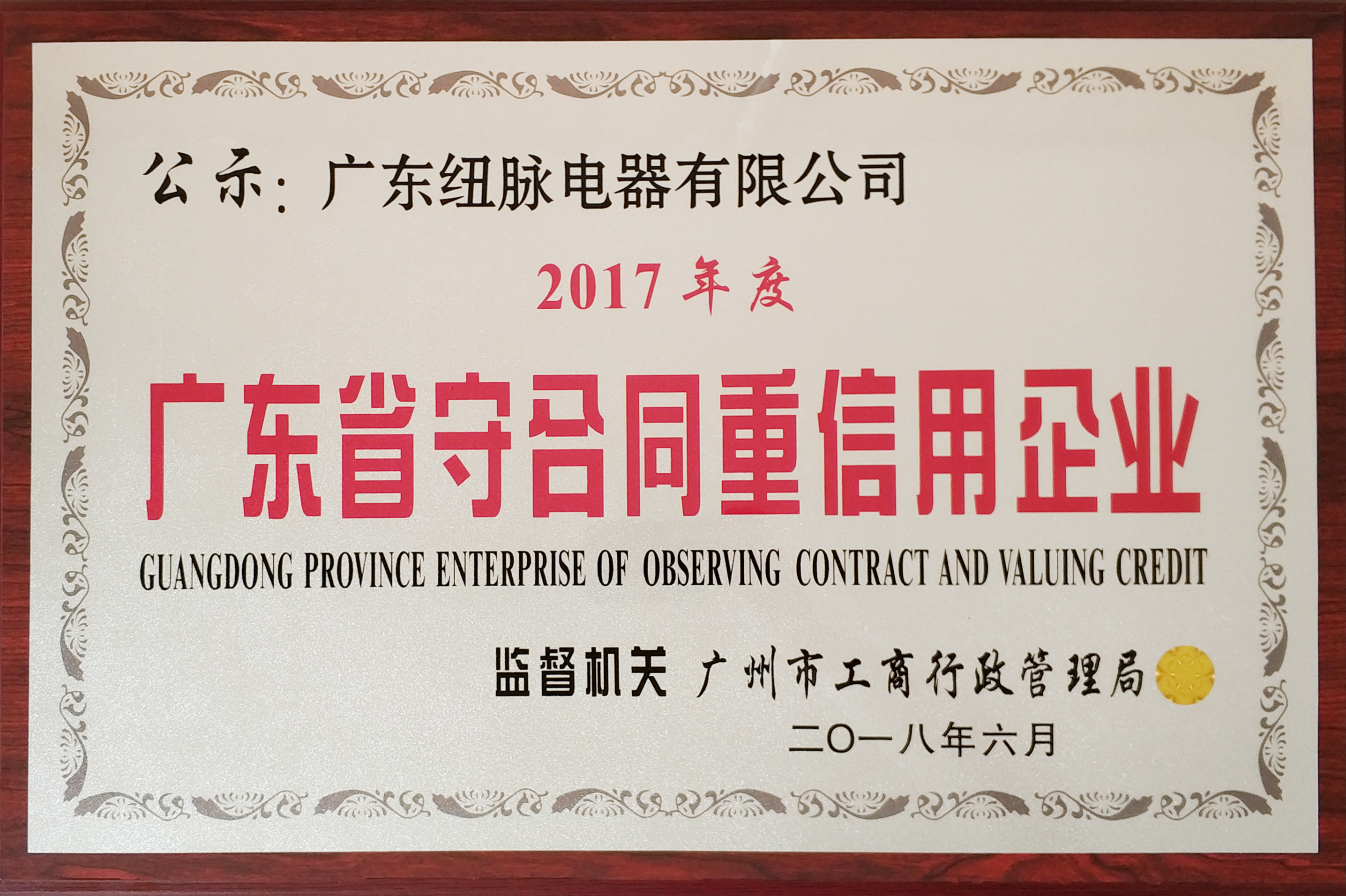 广东省守合同重信用企业